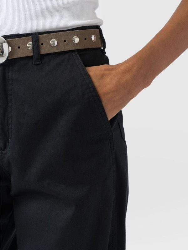 The Alma Barrel Leg Chinos in black are set to be your new go-to pants. They’re made from a durable cotton blend fabric and topped by a structured waistband with denim-style stitching. The cropped legs make them perfect for creating seasonal looks and styling with casual tees. Each pair is handmade by skilled artisans who ensure a quality that will last for years to come.