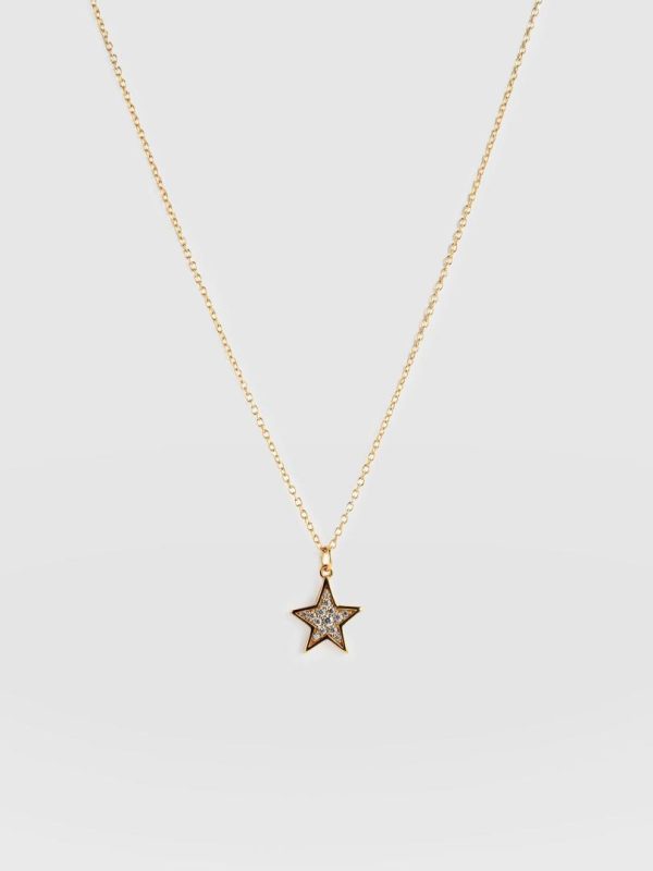 An elegant Astral Star Necklace in gold that can become a chic addition to your jewelry collection. Perfect for styling for work, weekends or as a gift for loved ones. This necklace features an elegant star design, blending timeless gold style with a touch of sparkle. Each necklace is handmade to guarantee precision and a quality that will last for years to come.