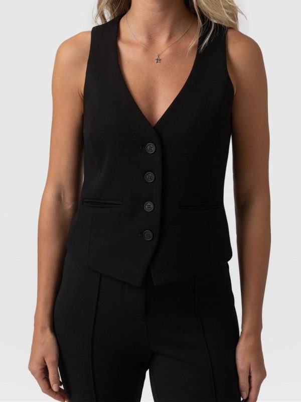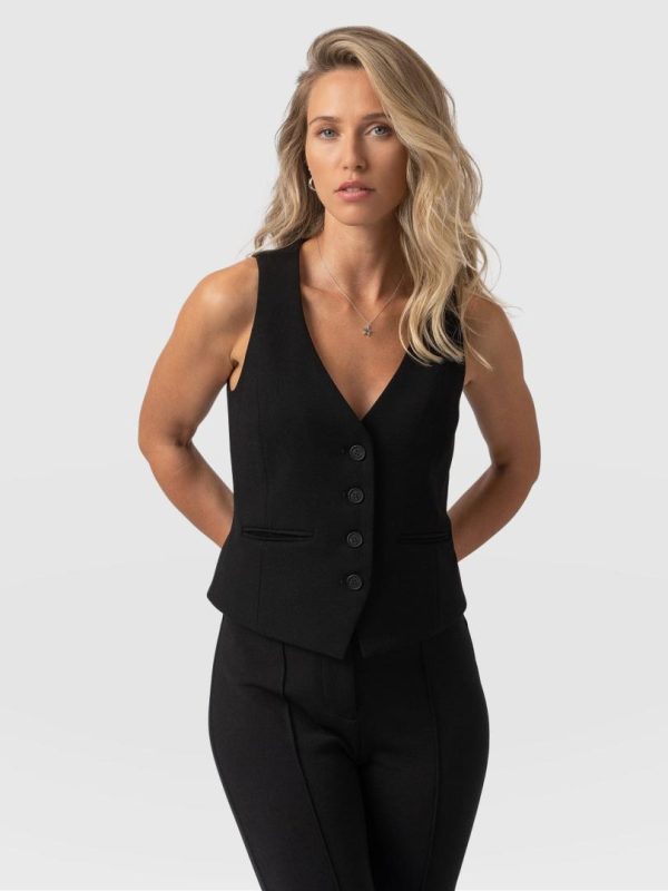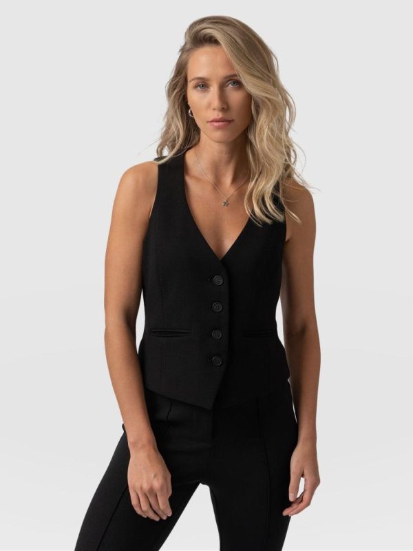 The perfect blend of workwear with off-duty style, the Astrid Vest in black is a wardrobe must-have. It’s made from luxe viscose crepe for a planet-friendly finish and features a V-neckline with branded buttons at the front. Wear it alone for a cosmopolitan look, or style it over our Easy Tee in white for something more casual.