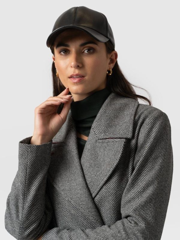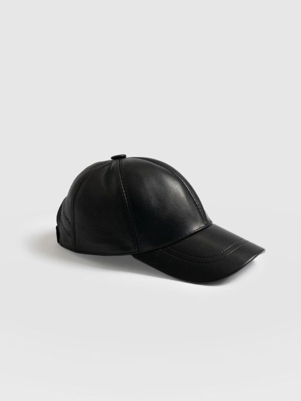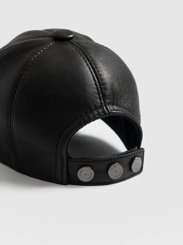 A classic leather baseball cap in black with an easy to use centre back popper. Hand made using the softest, sustainable leather. Each cap is made with discrete stitching to ensure the perfect fit and feel. Adjustable to fit a variety of sizes.