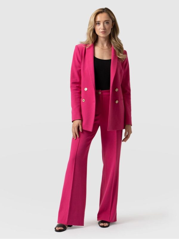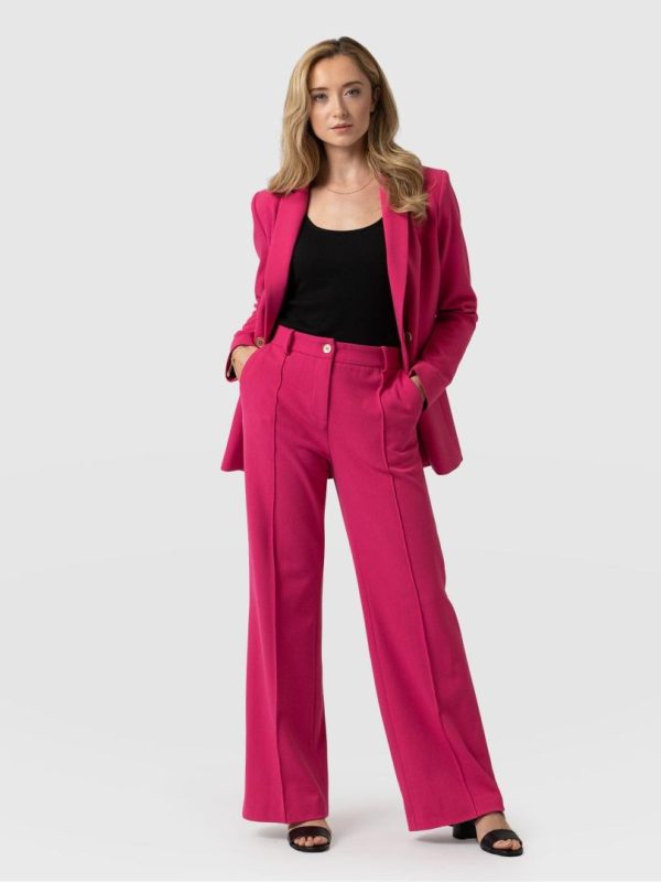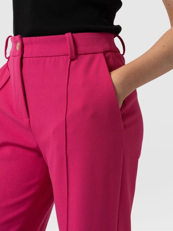 A smart, tailored pant style in hot pink with a stylish wide leg and pintuck detail. High-waisted with belt loops for styling. We make each style in our studios in Europe with a soft crepe fabric that’s easy to wash and easy to wear. Perfect for work or weekends, easily styled with sandals or sneakers for a casual look or with boots or heels for work and smart occasions. Designed with an extra long length to be shortened for your perfect fit.