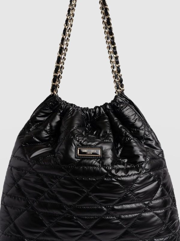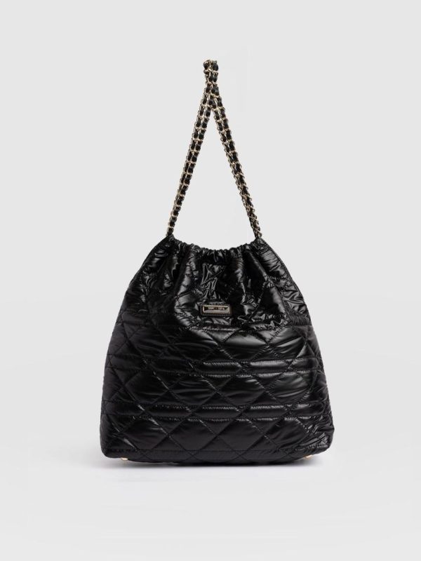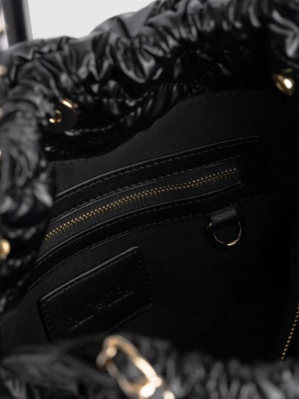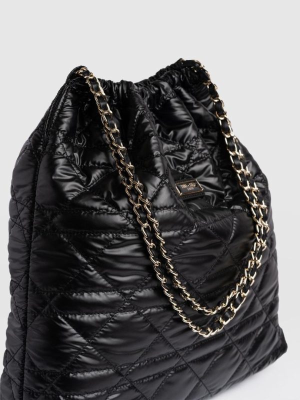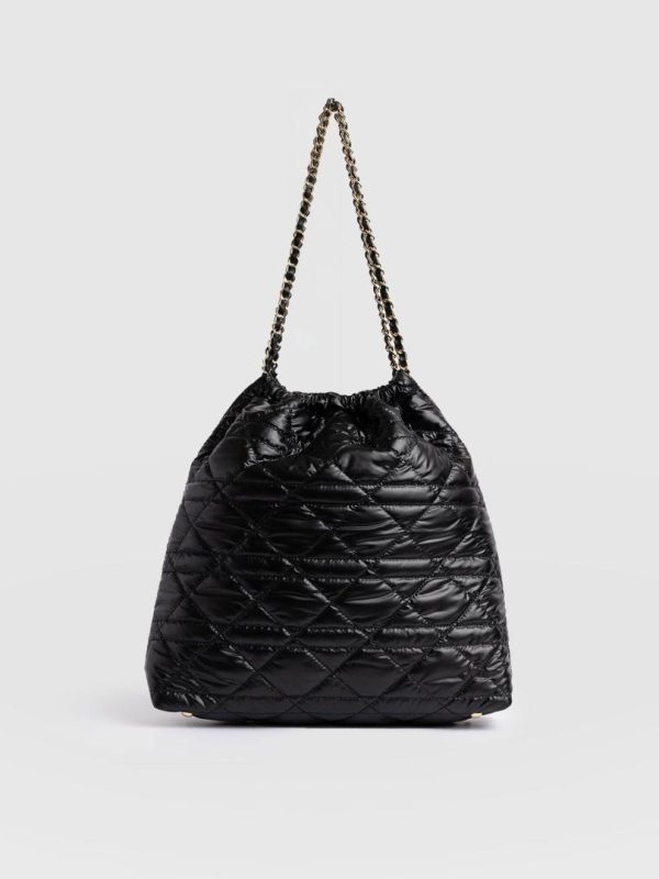 Take a classic tote bag, add a contemporary drawstring closure, and you’ll create the Camilla Bag. This new design is handmade from glossy nylon and textured with a quilted finish. At the top, a gold chainlink strap fastens over your shoulder and adds a glimmering edge to the chic silhouette. Inside, you’ll find plenty of space to store all your essentials and a zipped pocket for your prized possessions.