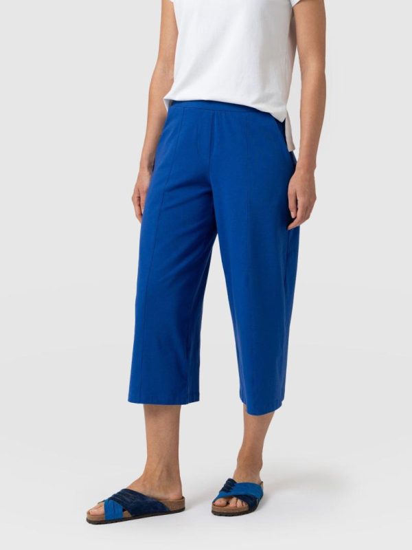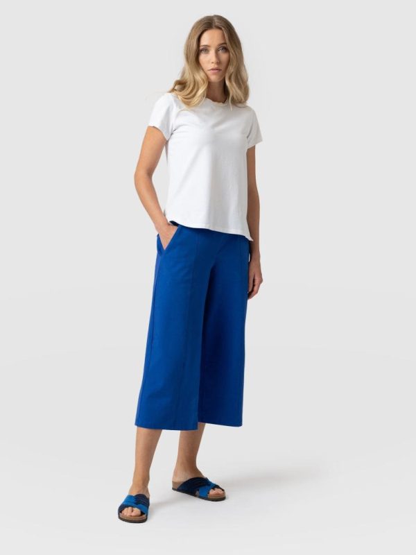 A wide leg culotte pant in Cobalt Blue, a unique and stylish piece for your wardrobe. Featuring a pintuck culotte design, these culottes are a shorter version of the Keller Wide Leg Pant, perfect for the warmer months. The deep blue colour adds a touch of sophistication, making them perfect for a formal occasion or a day out. Pair them with a Rib Cami and Studded Sutton Slides for a chic finish.