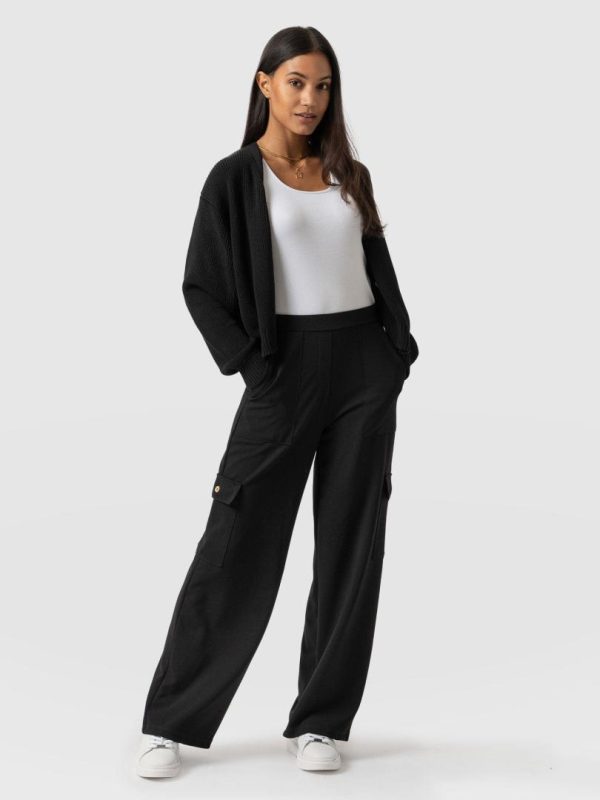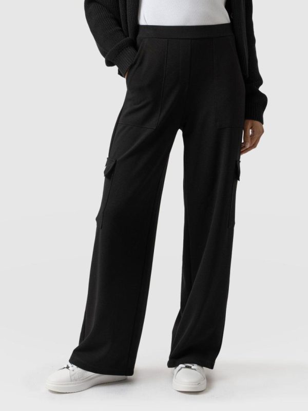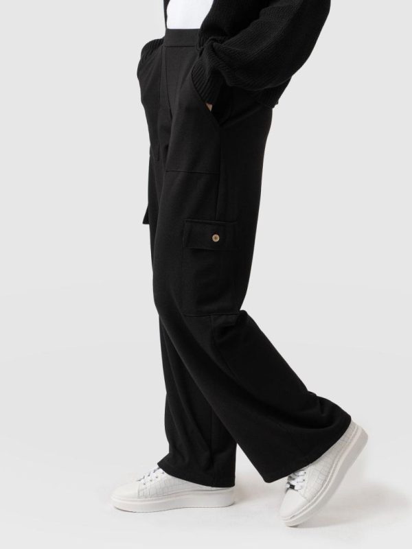 Look: Jersey wide leg trouser with cargo pockets. Oversized fit. Pull on waistband.