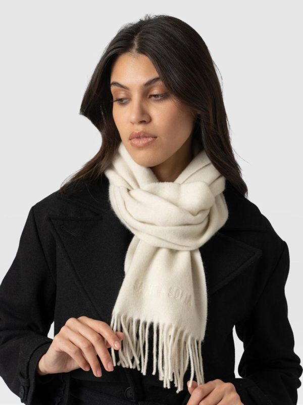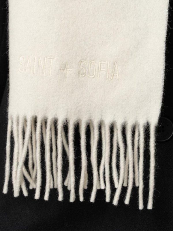 Enhance your winter wardrobe with our pure Cashmere Scarf in Cream, the perfect choice for gifting. This luxuriously soft and warm scarf is a versatile accessory that pairs flawlessly with our Cashmere Beanie in Cream/Beige to create a chic, coordinated look. It features elegant Saint and Sofia branded embroidery, making it the ideal choice for those who appreciate both style and comfort.