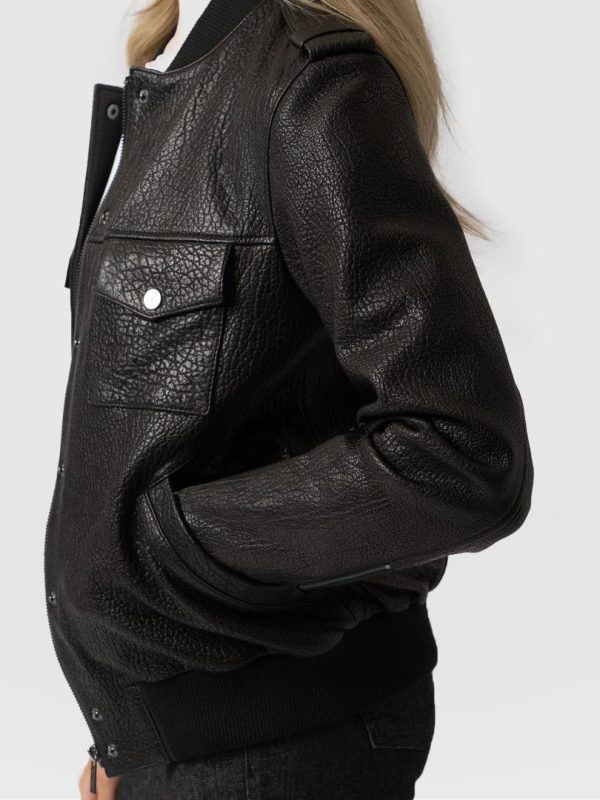 A classic leather bomber jacket in black, hand-made with the softest natural leather and a ribbed neckline. Designed with an easy, relaxed fit. Each one is hand-made in Europe using the softest, sustainable leather that will stand the test of time. We added a yolk detail on the back for a little bit more edge. Can be worn over any dress or pants and jeans to edge up your look.