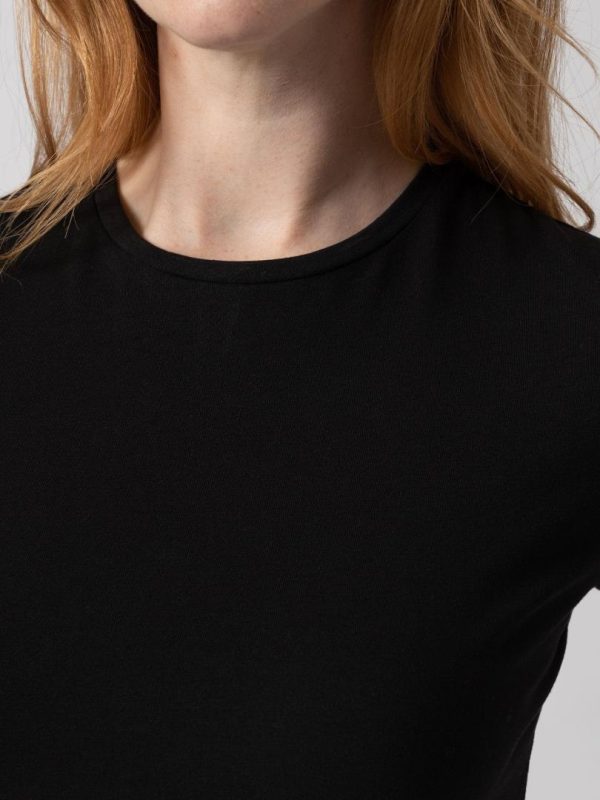 An essential crew neck t-shirt style in black, handmade with the softest organic cotton and a comfortable, relaxed fit. We make these in our studios in Europe with a certified, organic cotton that’s soft and sustainable. We added side slits for easy french tucks and a lengthened, more flattering fit. Perfect for layering and easy to wear for work, at home or on weekends.