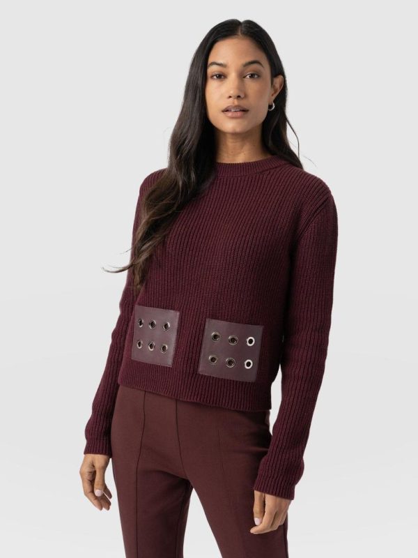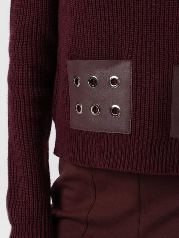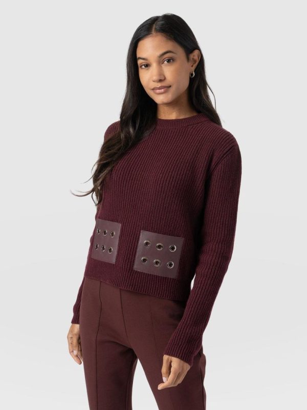 Saint And Sofia Eyelet Rib Knit Sweater Maroon | Women Knitwear