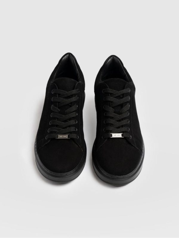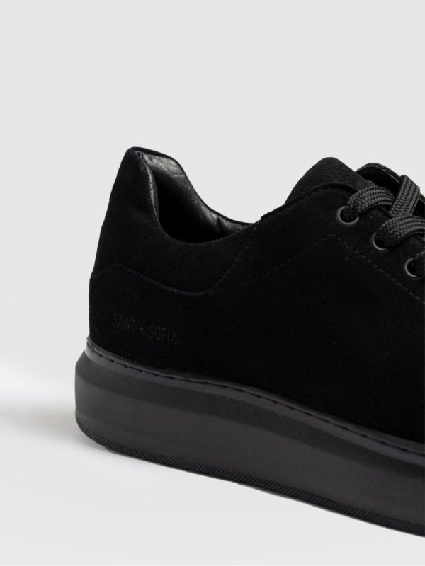 The Hampstead Sneaker in Black Suede is a classic platform sneaker with a branded Saint and Sofia plaque at the lace. Made with the softest natural leather and a comfortable wide fit, it’s perfect for daily wear. Our sneakers are designed in London and handmade in Portugal in a family-owned studio that has been making shoes for over seventy years, with each batch arriving in small quantities to ensure the highest quality. Pair yours with a knit and leggings, or opt for wide-leg jeans. Limited number available.