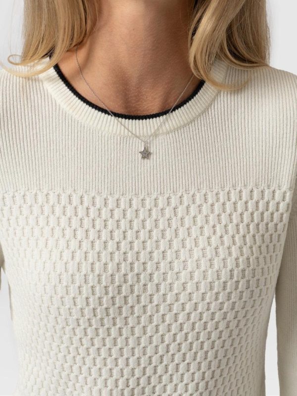 A beautiful rib knit sweater in cream, designed for an elegant fit and a stylish look. Made with a soft and sustainable eco friendly viscose fabric that’s super smooth. We designed it with a honeycomb knitted pattern and finished with discrete stitching. Every style is made in our studios in Europe and made by hand. Pair perfectly with jeans or leggings on a weekend for a relaxed look or style with pants and heels for something more formal for work or evenings out.