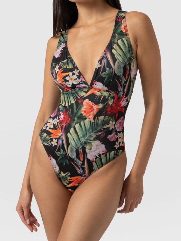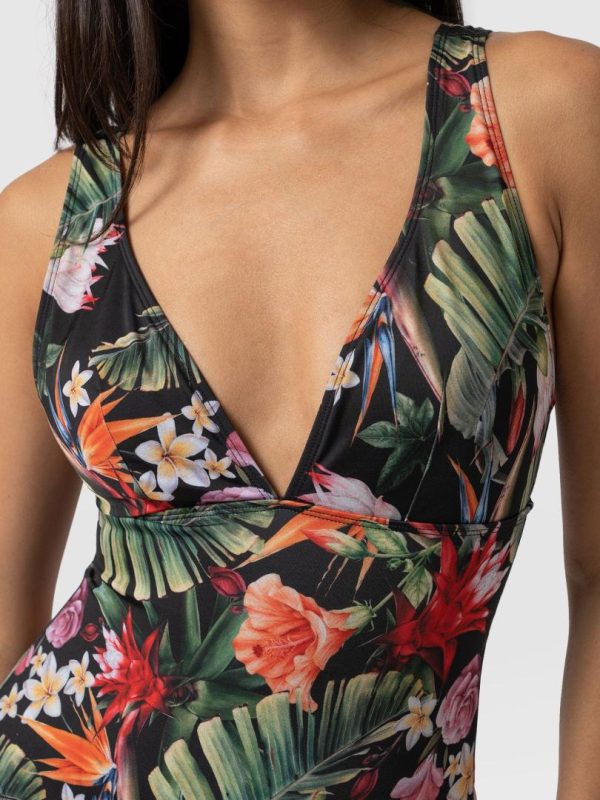 Introducing the Levana Swimsuit in tropics, the ultimate addition to your swimwear collection. This swimsuit has a plunging neckline with removable cups and provides excellent support and shape. The adjustable straps ensure a comfortable and customisable fit for all body types.