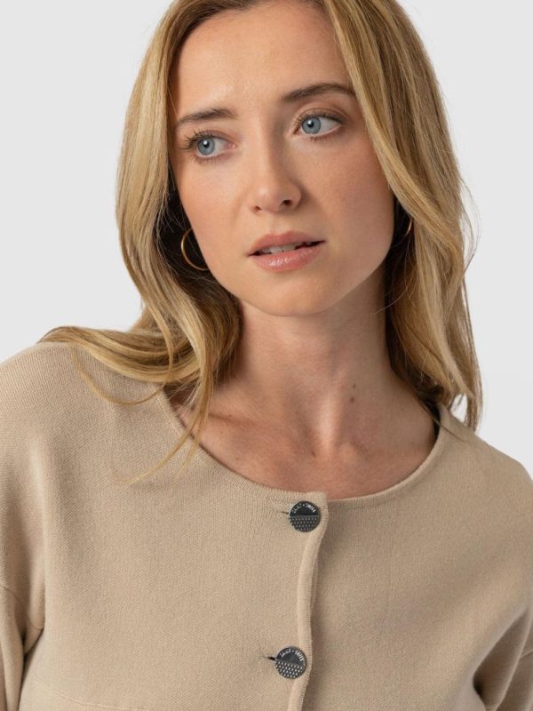 Beautifully made with a chunky knit finish, the Maeva Jacket is a soft and smooth light weight jacket with a timeless, comfortable style. It’s handmade in Europe and stitched to a cropped silhouette with long, bracelet-length sleeves. At the front, textured gold shank buttons provide a glimmering detail, while two patch pockets create a tailored look. Style yours over a midi skirt or with jeans for a more casual look.|