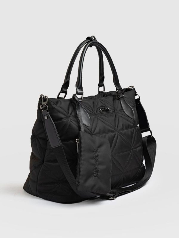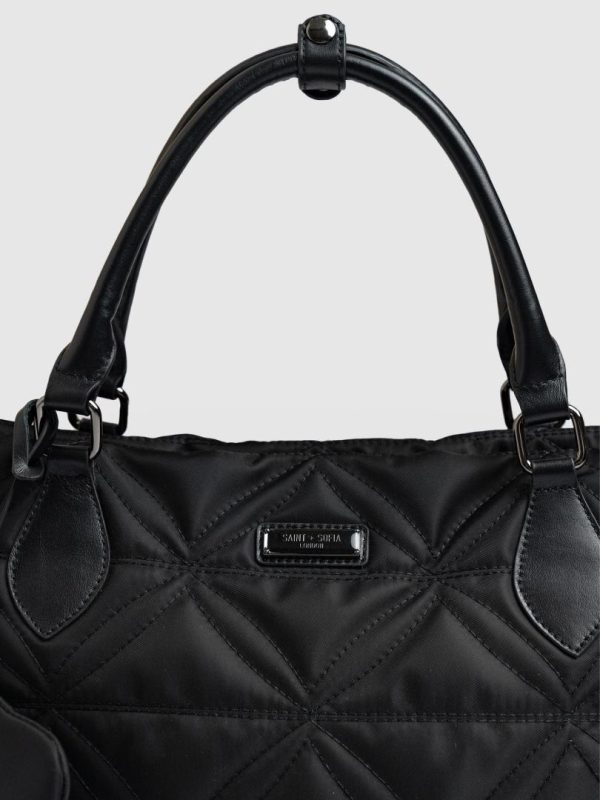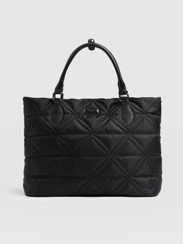 The Quilted Selene Shopper Bag in black is a chic and versatile take on the classic Quilted Tote Bag. This new must-have accessory comes with a convenient removable purse and stylish tassel key tags – both of which can be easily detached or added to suit your taste. Whether you’re heading into the office or venturing out for a day of shopping, this bag offers a seamless combination of fashion and functionality.