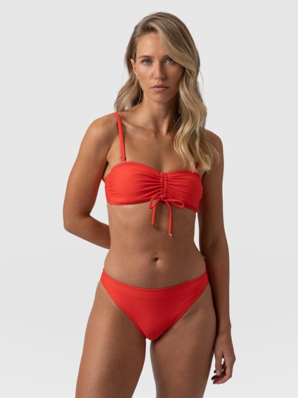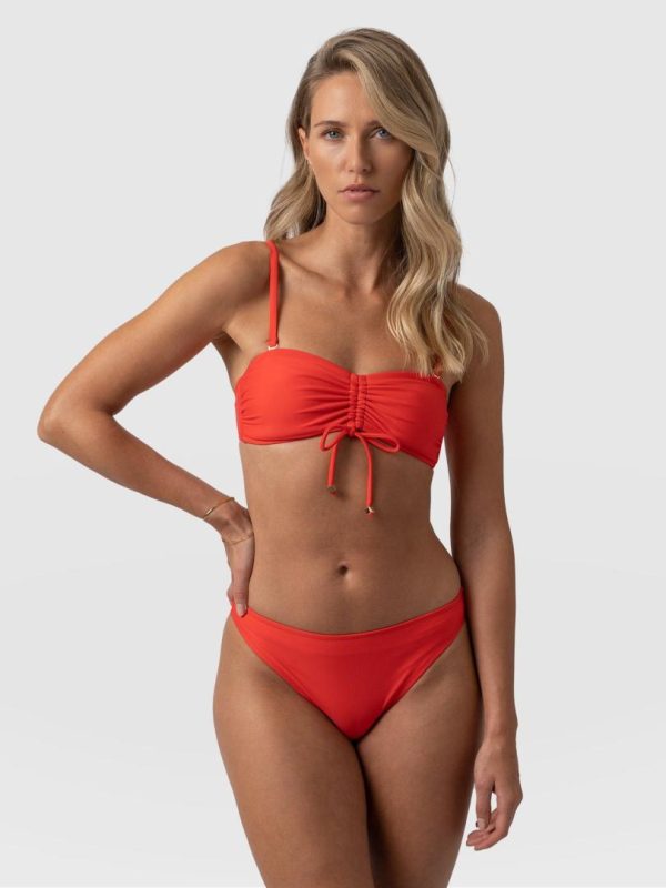 The Skye Hipster Bikini Bottom in red is designed with poolside vacations in mind. We’ve cut this piece from Italian Econyl, a UV-protective performance fabric, and infused with a hint of stretch for long-lasting comfort. It’s trimmed with tonal stitching and finished by hand in our studios in Europe to ensure the highest quality.