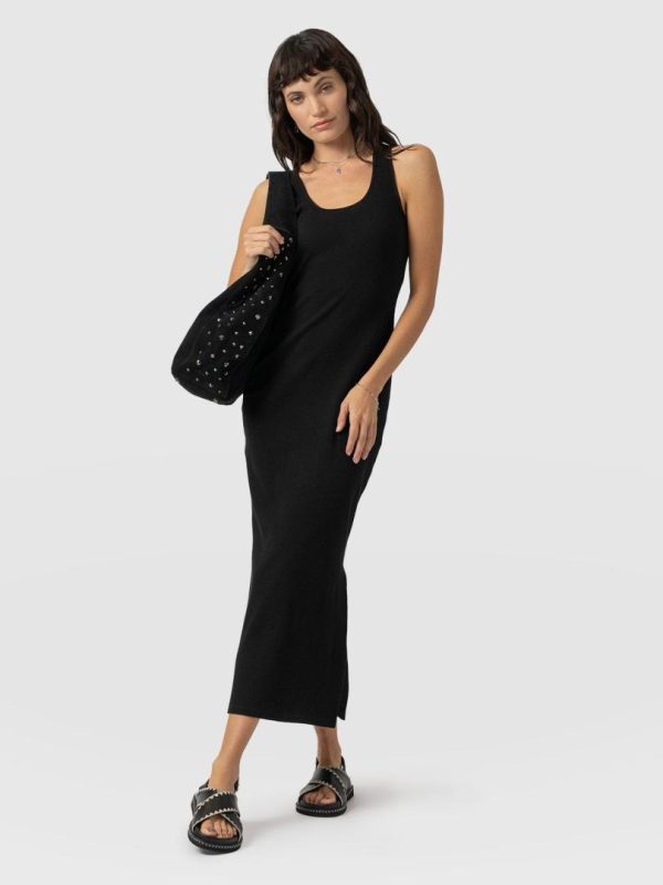 A comfortable cotton maxi dress in black with a gentle rib finish. Designed for a comfortable, figure hugging fit (with a little stretch) and with racerback slits on both sides. Made with the softest, smoothest organic cotton. Each one is finished by hand in our studios in Europe to guarantee the perfect fit and feel that’s true to size. Pair with slides, sandals or sneakers in summer or barefoot when you’re on the beach.